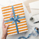 A wrapping paper designed with an orange and white striped pattern in medium size. You can change the orange for a different colour.