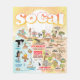 Bright and colourful scene offers a spectacular view of Southern California - wacky characters frolic on the beach and desert of SoCal showcasing Los Angeles, San Diego, Orange County, Santa Barbara, Riverside, Palm Springs, El Centro, Anza Borrego and Joshua Tree parks as well as the border cities of Tijuana, Tecate and Mexicali. This charming scene has it all – a surfer hangs ten while a killer whale leaps out of the water, zoo animals greet the tourists, a muscular beach couple both flex to impress as a T-Rex roars a challenge and a tank moves into position and much more…