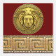 Medusa and Greek Key Gold on Burgundy Wallpaper