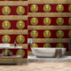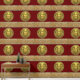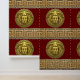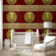 Medusa and Greek Key Gold on Burgundy Designer Wallpaper