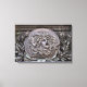 The shrieking and severed head of the Gorgon Medusa along with two blades and a smirking satyr on the shield of Athena. Laurel leaves, symbols of victory related to Athena, frame the shield. This image is from the base of a statue dedicated to the writer Friedrich Schiller.