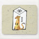 A mouse pad you can personalise with your monogram or name inside a hand drawn diamond shaped frame. A playful watercolor meerkat stands inside a hand drawn rectangle frame. The background is creamy beige colour with black random dots and splatters.