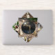 Pictured are three meerkat images in different shapes layered to create a polyscope design