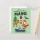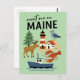 Set sail for the Northeast with this charming 'Meet Me in Maine' postcard, featuring a delightful collection of Maine icons in a fun doodle style! This whimsical illustrated postcard captures the rugged beauty of the Pine Tree State, showcasing everything from a majestic moose and a classic lighthouse to a delicious lobster, evergreen pine trees, and a bustling lobster boat on the waves. The playful illustrations and clear lettering make this postcard a unique and memorable tribute to Maine, USA.