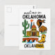 Discover the Sooner State with this charming 'Meet Me in Oklahoma' postcard, featuring a delightful collection of Oklahoma icons in a fun doodle style! This whimsical illustrated postcard captures the state's rich Native American heritage, booming oil industry, and classic cowboy spirit. It showcases everything from the Oklahoma State Capitol and a towering oil derrick to a proud Native American profile, a powerful bison, and an authentic cowboy boot. The playful illustrations and clear lettering make this postcard a unique and memorable tribute to Oklahoma, USA.