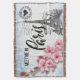 You'll want to utilise this throw all year long. Light but comfortable, it's perfect for all seasons. It features Paris' Eiffel Tower, Cherry Blossoms, and a simulated postage stamp with a heart that says "Made with Love." The main theme says "Meet me in Paris".