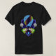 I give wanted to give this a 4 instead of a 5 because these Basic DARK T0shirts run unexpectedly SLIM or Narrow. Which is great if you do not have a potbelly, but I have a paunch. It isn't the shirt's fault that I've got a beer belly. The design and shirt itself is a quality cotton shirt. The color is more of a deep purple, but still a very pretty color. The Basic DARK T-shirts run a bit SLIMMER than the Basic Ts. The neck is a fraction narrower (or seems to be narrower) also. I'm a paunchy middle-aged woman and my neck is 12 inches (31cm) thick and the neckline fell about the same as in the photo of the man, and I had the desire to tug it a bit. So if you're a thick necked man or like loose shirts, be aware these are slimmer shirts. Once I get rid of my lockdown paunch it'll look great. The shirt washed well in cold water with no apparent bleeding. We don't have a dryer, so it hung dry. Did not shrink. Love the colors and the design. The design looks smaller on my shirt than it does on the model on-line. But still, it looks good on the shirt. The printing looks as it does on the model, just the size seems fractionally smaller. Washed garment in cold water, hung dry and design appeared unaffected.