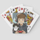 Playing cards featuring the video gamer Mega Jrex with his black and white cat, Figaro.