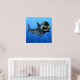 The Megalodon was the most powerful predator in the seas of the Cenozoic Era of Earth's history. Here he devours two swift swimming tuna in one large gulp. This shark was 16 metres or 52 feet long and its teeth remain in fossil beds.