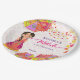 Mehndi cute Indian henna bride with pink and yellow umbrellas and tassels personalised paper plates.