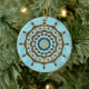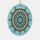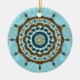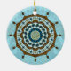 This copper and blue mandala was inspired by Indian mehndi and costumes from Japanese anime. It features layers with lotus petals, leaves, paisley and an ornamental wheel around it all.
