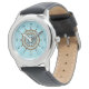 This copper and blue mandala was inspired by Indian mehndi and costumes from Japanese anime. It features layers with lotus petals, leaves, paisley and an ornamental wheel around it all. This watch is available in a variety of colours, sizes, and styles, including sizes for both kids and adults.