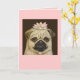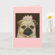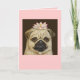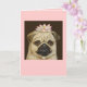 pug with lotus blossom hat on card for you to customise at no extra cost