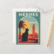 This vintage-style Meknes postcard captures the magic of Morocco with a stunning sunset silhouette of a cat, palm tree, and the city’s iconic minaret. Perfect for travelers, cat lovers, and fans of Moroccan architecture, this retro art piece is ideal for mailing, collecting, or framing as unique wall décor. Celebrate the charm and colours of Meknes with this beautiful travel-inspired design.