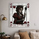 Adorned in a crown of sharp thorns and rich red velvet, she holds her scepter against a vintage, parchment-textured background that adds a timeless, aged feel to the piece. The structured playing card layout, complete with "Q" and heart corner accents, creates a unique "frame-within-a-frame" effect that makes it stand out on any wall.