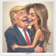Cartoon illustration of Melania Trump hugging her husband Donald Trump while they laugh