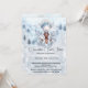 A beautiful and magical forest scene with fir trees covered in snow flank each side of a magical, glowing portal that has a bright shining star in it. An angelic melanin fairy pixie princess is standing in front of the portal with her ethereal white wings spread wide open. Her long white hair is hanging loose around her regal face and an ornate royal crown encrusted with gemstones rests on top of her head. She is framed by soft whimsical snowflakes dancing in the air against a dusky pale blue background. This downloadable and printable invite is ideal for a fairytale; fairy; winter wonderland or mythical birthday or wedding celebration. Simply customise the templates to suit your requirements.