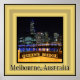 Beautiful photographic souvenir from Melbourne, Victoria Australia showing bright and colourful city lights from the CBD and reflections in the water of the Yarra River from the famous Queen's Bridge.