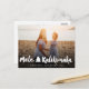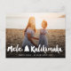 'Mele Kalikimaka' (Merry Christmas in Hawaiian) White Bold Brush Script Calligraphy With Christmas Tree And A Full Bleed Photo Christmas Holiday Postcard.