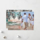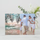 Hawaiian merry christmas holiday card featuring a photo of your family, the words "mele kalikimaka", a beach background, palm leaves, and string lights.