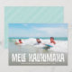This Hawaii themed holiday photo card features fun retro tiki typography that says "Mele Kalikimaka" over a horizontal photo. On the back is a simple aqua and white diagonal stripe pattern. You can also remove the pattern and add another photo or additional text. Greeting colour is customisable!