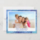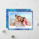 Blue incandescent Faux Foil Mele Kalikimaka Hawaiian Tropical Palm Leaf Family Photo Christmas Holiday Card. The picture and family name can be replaced on this simple beach or coastal vacation Christmas Family Photo Card.