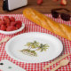 Bring a splash of sunshine to the season with this tropical Mele Kalikimaka Christmas paper plate, featuring whimsical palm trees, with your name beautifully printed beneath the Hawaiian holiday greeting. A perfect way to bring a touch of warmth to your holiday celebration.