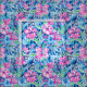 A seamless pattern featuring pink flowers with green leaves, blue flowers in the background, and white music notes and staves. The design has a hand-painted look, blending floral elements with musical motifs to create a harmonious and artistic effect.