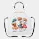 Cook up some festive fun with this vibrant apron featuring a delightful illustration of three dancing Catrinas and customisable text! Above or below the cheerful artwork, you can add a name, a fun phrase, or any text you desire to personalise your cooking attire. Each skeletal figure is adorned with colourful floral hats and flowing dresses in cheerful hues of peach, teal, and red, bringing the joyful spirit of Día de Muertos to your kitchen.