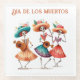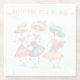 Protect your surfaces in vibrant style with these glass coasters featuring a delightful illustration of three dancing Catrinas and customisable text! Above or below the cheerful artwork, you can add a name, a short message, a date, or any text you desire to personalise your set. Each skeletal figure is adorned with colourful floral hats and flowing dresses in cheerful hues of peach, teal, and red, bringing the joyful spirit of Día de Muertos to your tabletop.