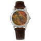 Women’s brown leather strap watch with an image of a fractal of mouth-watering melted chocolate. Optional red crystal orbs mark the 12, 3, 6 and 9 positions.See the entire Fractal Art Watch collection in the ACCESSORIES section.