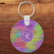 Features an abstract melted faux glass design in rainbow colours. Personalise with an initial.