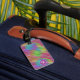 Features an abstract melted faux glass design in rainbow colours. Personalise with an initial on the front, and a name and address on the back.