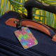 Features an abstract melted faux glass design in rainbow colours. Personalise with an initial on the front, and a name and address on the back.