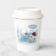 Enjoy a warm beverage this season with a cute melting snowman holding a steaming cup of cocoa.