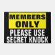 Members Only Please Use Secret Knock - this can function as a serious door mat if you're hosting the monthly meeting for your local chapter of the Illuminati. OR it can be a funny novelty mat at the door to your plain old house to tell unwanted company and solicitors they can knock til their knuckles bleed but you won't let them in.