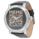Meme of the Birthday Cruiser Vacation Funny Crew Graphic design Gift Men's Vintage Black Leather Strap Watch Classic Collection.