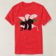 I give wanted to give this a 4 instead of a 5 because these Basic DARK T0shirts run unexpectedly SLIM or Narrow. Which is great if you do not have a potbelly, but I have a paunch. It isn't the shirt's fault that I've got a beer belly. The design and shirt itself is a quality cotton shirt. The color is more of a deep purple, but still a very pretty color. The Basic DARK T-shirts run a bit SLIMMER than the Basic Ts. The neck is a fraction narrower (or seems to be narrower) also. I'm a paunchy middle-aged woman and my neck is 12 inches (31cm) thick and the neckline fell about the same as in the photo of the man, and I had the desire to tug it a bit. So if you're a thick necked man or like loose shirts, be aware these are slimmer shirts. Once I get rid of my lockdown paunch it'll look great. The shirt washed well in cold water with no apparent bleeding. We don't have a dryer, so it hung dry. Did not shrink. Love the colors and the design. The design looks smaller on my shirt than it does on the model on-line. But still, it looks good on the shirt. The printing looks as it does on the model, just the size seems fractionally smaller. Washed garment in cold water, hung dry and design appeared unaffected.