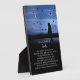 Change the name on this beautiful memorial plaque and make a lasting tribute to a beloved cat. How beautiful heaven is, because of all the animal souls and spirits. A spiritual poem by Stephanie Laird. A cute cat, silhouetted on a fence looking into the stars and moon with birds. A beautiful remembrance for your beloved kitty.