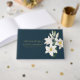 A beautiful navy blue and gold foil white lilies memorial "celebrating the life of" funeral keepsake guest book. Simply customise the text and create your own customised memorial guest book. A thoughtful remembrance guest book for funerals and memorials.