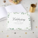 Customer specific, memorial, elegant, simpel "Celebrating the life of " handwriting font, white , euclayptus design funeral guest book.
