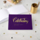 Customer specific, memorial, elegant, simpel "Celebrating the life of"gold-foil handwriting font, violet, funeral guest book. Availible in gold, rose-gold and silver foil.