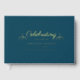 Customer specific, memorial, elegant, simpel "Celebration of life" gold-foil handwriting font, blue funeral guest book.