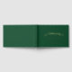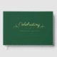 Customer specific, memorial, elegant, simpel "Celebration of life" gold-foil handwriting font, green funeral guest book.