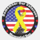 The yellow ribbon and Iwo Jima flag raising with the US flag background, and the messages of “Remember Our Veterans,” and “Memorial Day” to honour and remember our veterans who served for the United States.