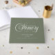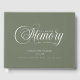 Customer specific, memorial, elegant, simpel "In Loving memory" handwriting font, sage green funeral guest book.