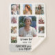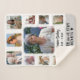 Keep your loved one forever in your heart with this personalised memorial photo collage blanket. This beautiful, custom sherpa blanket includes ten pictures, your loved one's name, and more text of your choosing. At the bottom, in the grey space, it currently says, "Forever you will stay in our hearts." Use the simple templates and your photos will automatically have a faded edge effect. "Customise further" to make detailed changes (such as changing the text at the bottom). Choose from small (shown), medium, and large blanket sizes. Celebrate your loved one's life with this keepsake.