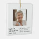 This Memorial ornament with custom photo and simple black typography offers a heartfelt tribute to a loved one. Featuring clean, elegant lettering that can be customized with a name, date, and special message, this Christmas holiday ornament provides a unique way to honor cherished memories.