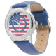 Honour your loved one with a patriotic custom photo memorial watch. This unique military memorial watch is the perfect gift for yourself, family or friends to pay tribute to a military veteran, military soldier, army, marines or fallen soldier. This patriotic memorial watch features a modern red white and blue USA American Flag, stars and strips.