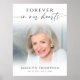 Simple yet elegant memorial photo welcome sign poster to honor your loved one at a funeral, memorial service, visitation, wake or Celebration of Life. The sign features one cherished photo, the sentiment FOREVER IN OUR HEARTS in a modern script with name and dates in a black and white design. OPTIONS: The sample is shown in a 18x24" size; other sizes are available (choose Custom Size for even borders by changing the height and width proportionately AFTER clicking the UNLOCK icon that looks like a chain link). Posters are available as a digital file download for printing locally when time is of the essence. You can also transfer the design to a foam board, banner, or other item. ASSISTANCE: For help with design modification, resizing or transferring the design, contact the designer BEFORE ORDERING via the Zazzle Chat MESSAGE tab below or email makeitaboutyoustore@gmail.com.
